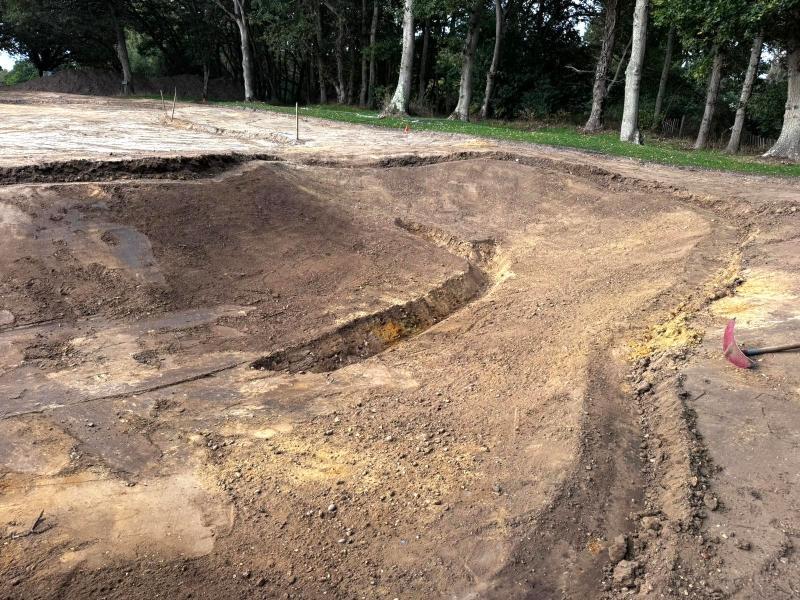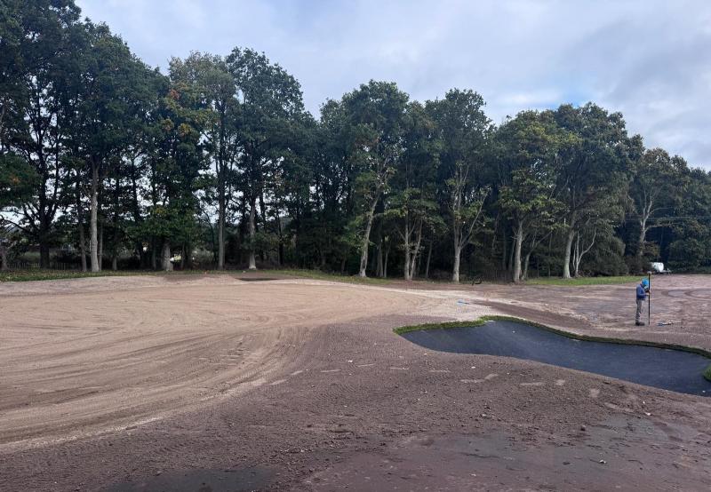 The dugout sub-base for the new green has been approved by the course architect, Simon Gidman. This has allowed the drain lines to be marked in preparation for excavation, pipe installation, and the laying of the stone carpet ahead of the rootzone. Both bunkers have now been shaped and drained, ready for type 1 to be laid before the rubber liner is installed next week.